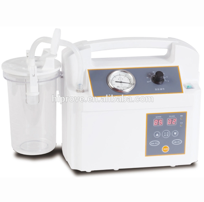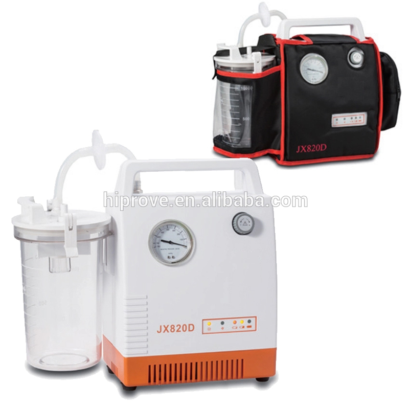 The model is the latest portable AC/DC suction unit. It is specially used for secretion, blood, vomitus and mucus removal of the patient who have undergone tracheostomy or had the trachea blocked, and for emergency treatment to a respiratory tract patient in hospital, first-aid teams, or social medical services, especially for a patient who is transported by vehicle or is in a place without AC/DC power supply.