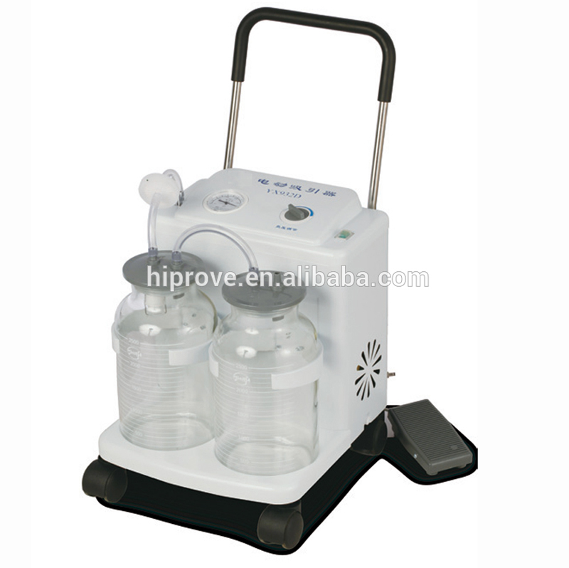 Model YX932D Electric Suction Apparatus, intended for extracting various mucus such as purulence, blood and phlegm from body cavity or wound in hospitals or center of social medical service, is a mobile suction unit with a high flow, high vacuum and a novel style. It can satisfy most demands in operating rooms.