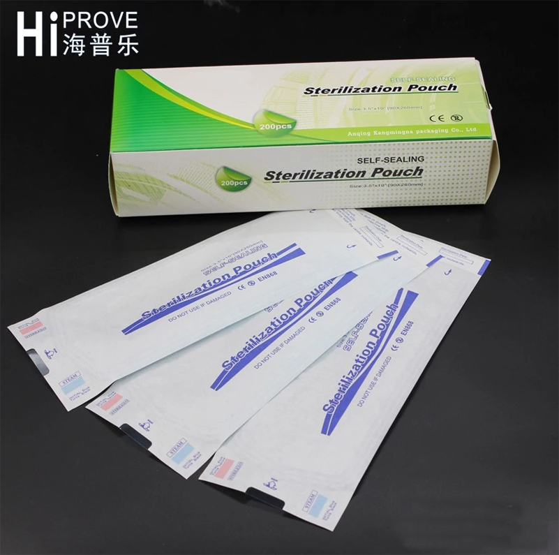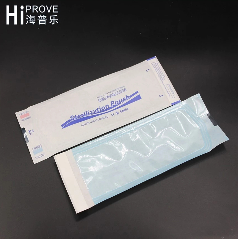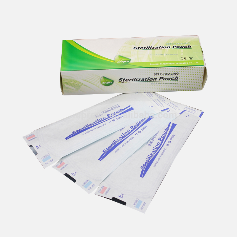 1.The pouch is made by medical-grade paper and Polyprolene/polyester laminated film. With self-sealing adhesive strip on the top ends.To make it easier and effective sealing without sealing machine.