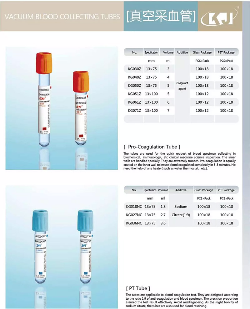 EDTA tube is widely used in clinical haematology, cross matching, blood grouping as well as various kinds of blood cell test instruments. It offers a comprehensive protection for blood cell, especially for protecting the blood platelet, so that it can effectively stop the gathering of blood platelet and makes the form and volume of blood cell uninfluenced within a long time. Excellent outfits with super-minute technique can spray additive uniformly on the inner surface of the tube, thus blood specimen can completely mix with the additive. EDTA anticoagulant plasma is used for biological assay of pathogenic microorganism, parasite and bacterial molecule, etc.